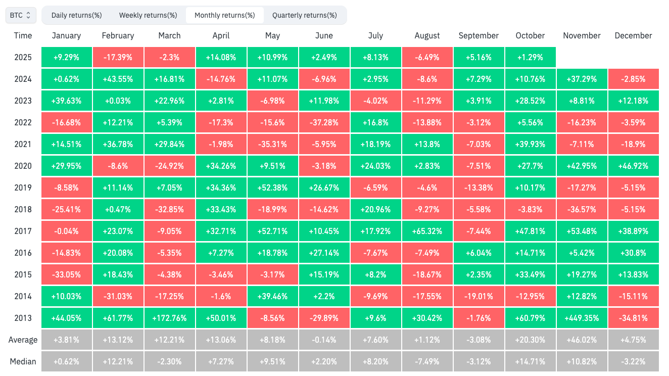 BTC/USD monthly returns (screenshot). Source: CoinGlass