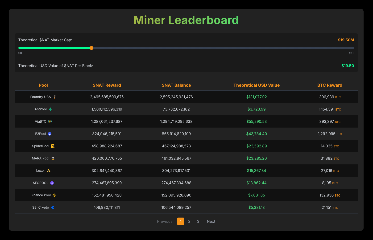 Community attention has focused on whether large pools recognize or claim their accrued NAT. Commentators tracking mining wallets highlighted Spiderpool activity and communications that referenced NAT rewards alongside BTC, which suggested operational uptake by one of the bigger pools. Those observations fueled expectations that more pools could turn on the mechanism as it matures.