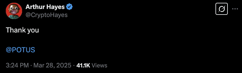 Unlike other, more high-profile pardons like Ulbricht or Kurson, the White House did not give a statement explaining its reasoning. BitMEX also did not comment. Hayes wrote a simple public “Thank you” post on X.