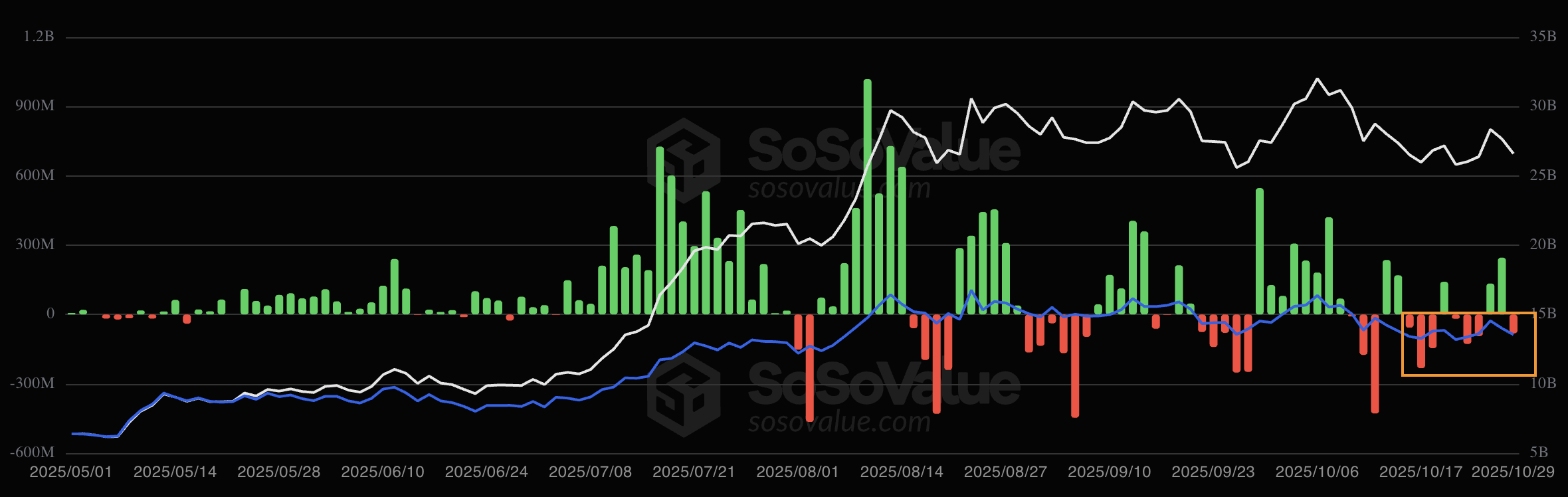 The bearish trend in Ether futures coincided with outflows from US-based Ethereum spot exchange-traded funds (ETFs) that have dominated since mid-October.
