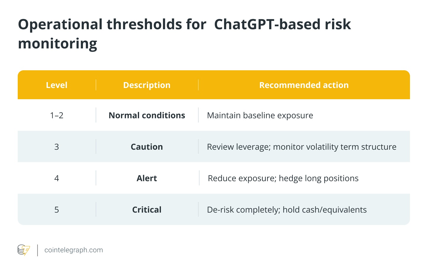 By linking text trends with numerical indicators such as funding rates, open interest and volatility, ChatGPT can help estimate probability ranges for different market risk conditions. For instance: