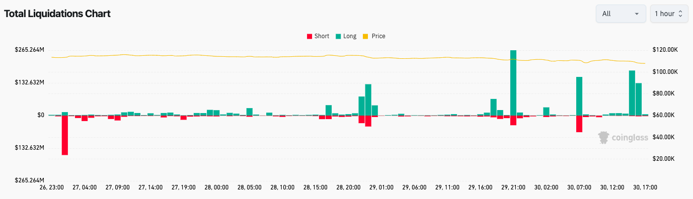 High liquidations characterized Crypto’s struggle as traders’ macro bets unraveled. Data from monitoring resource CoinGlass indicates that 24-hour liquidations reached over $1.1 billion at the time of writing.