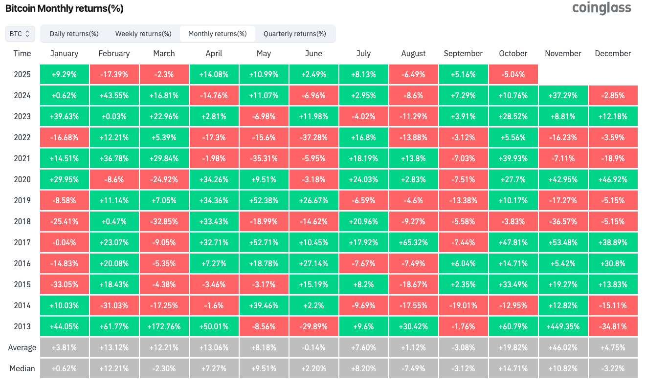 CoinGlass confirmed that October 2025 was now “red” for Bitcoin for the first time since 2018, with a single trading day left to turn the situation around.