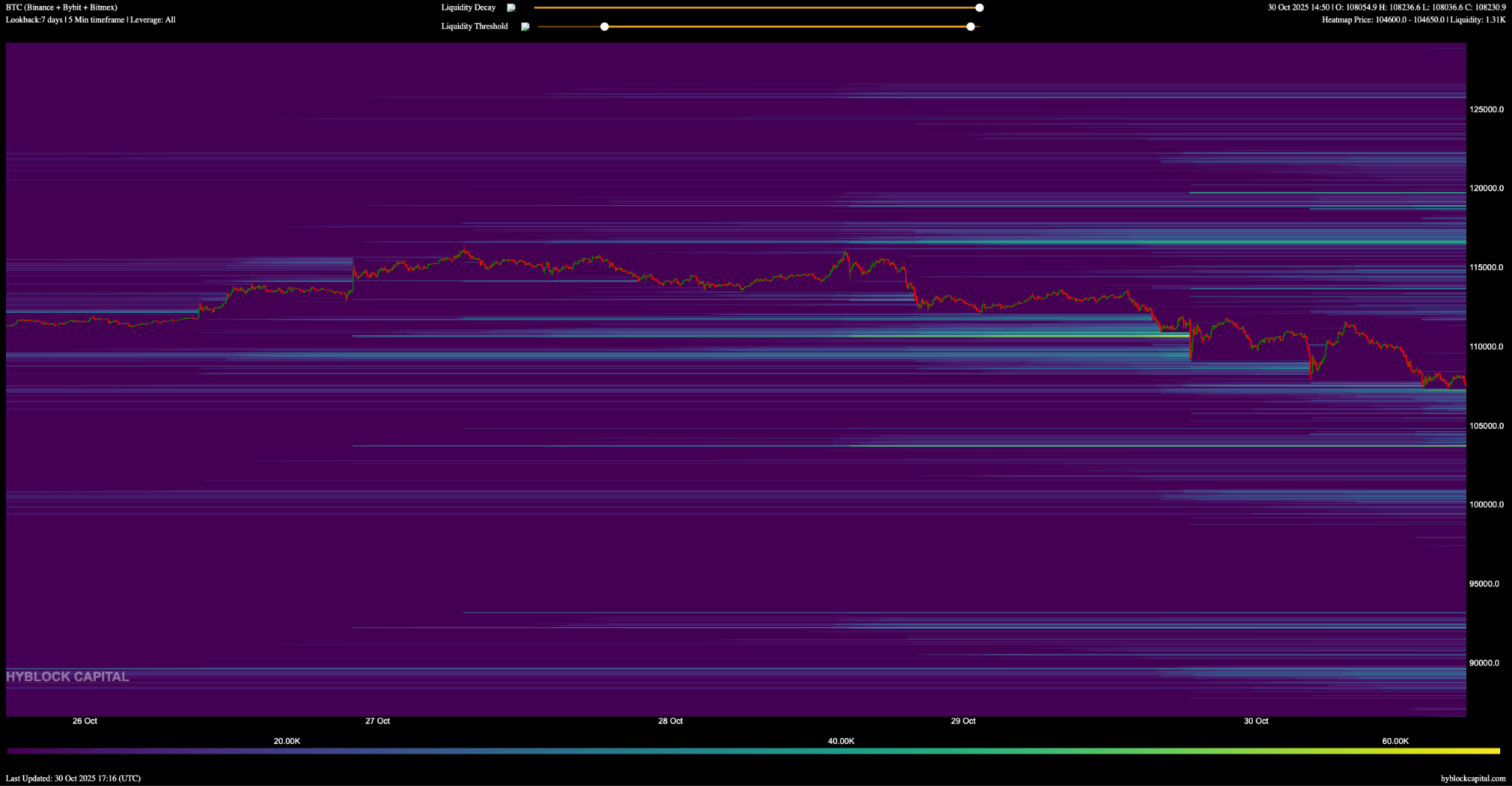 As things currently stand, the path of least resistance for Bitcoin remains to the downside, with Hyblock’s liquidation heatmap data showing the most immediate liquidity at $103,800.