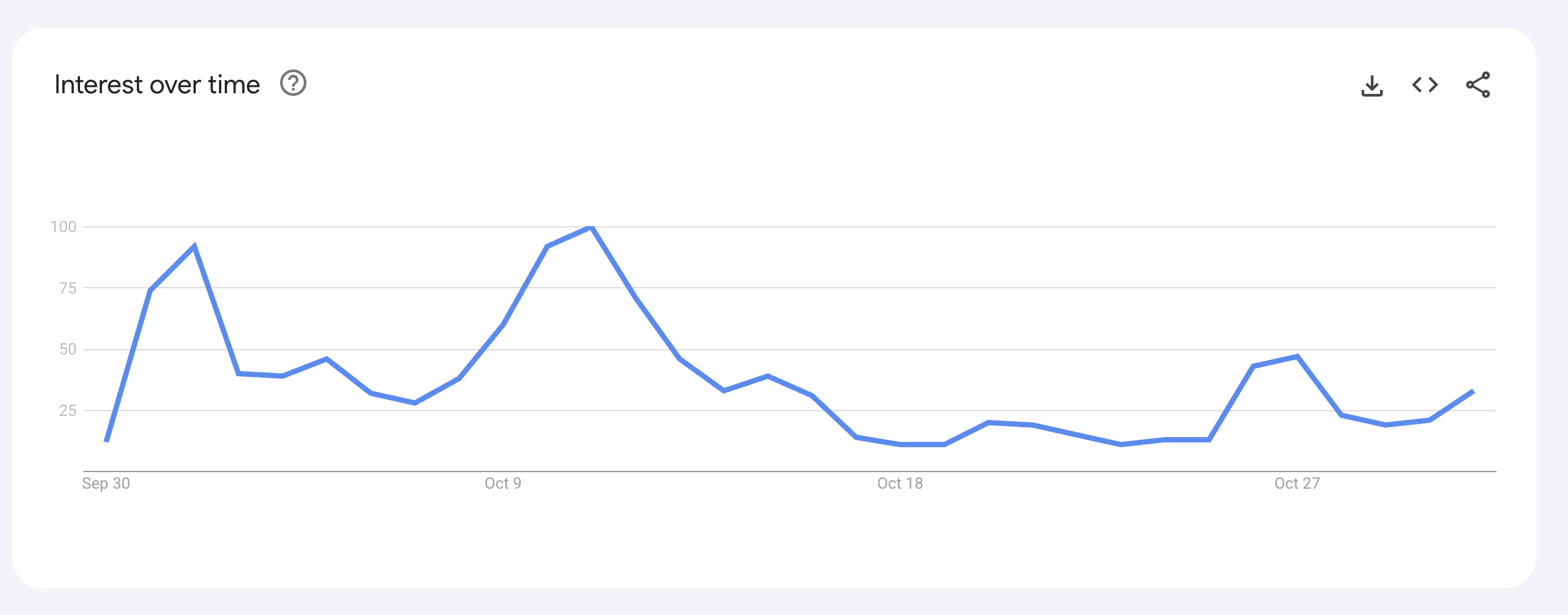 Adding fuel to the upside is retail FOMO, as evident in internet search spikes for the keyword “Zcash” throughout October, especially around the pump days.